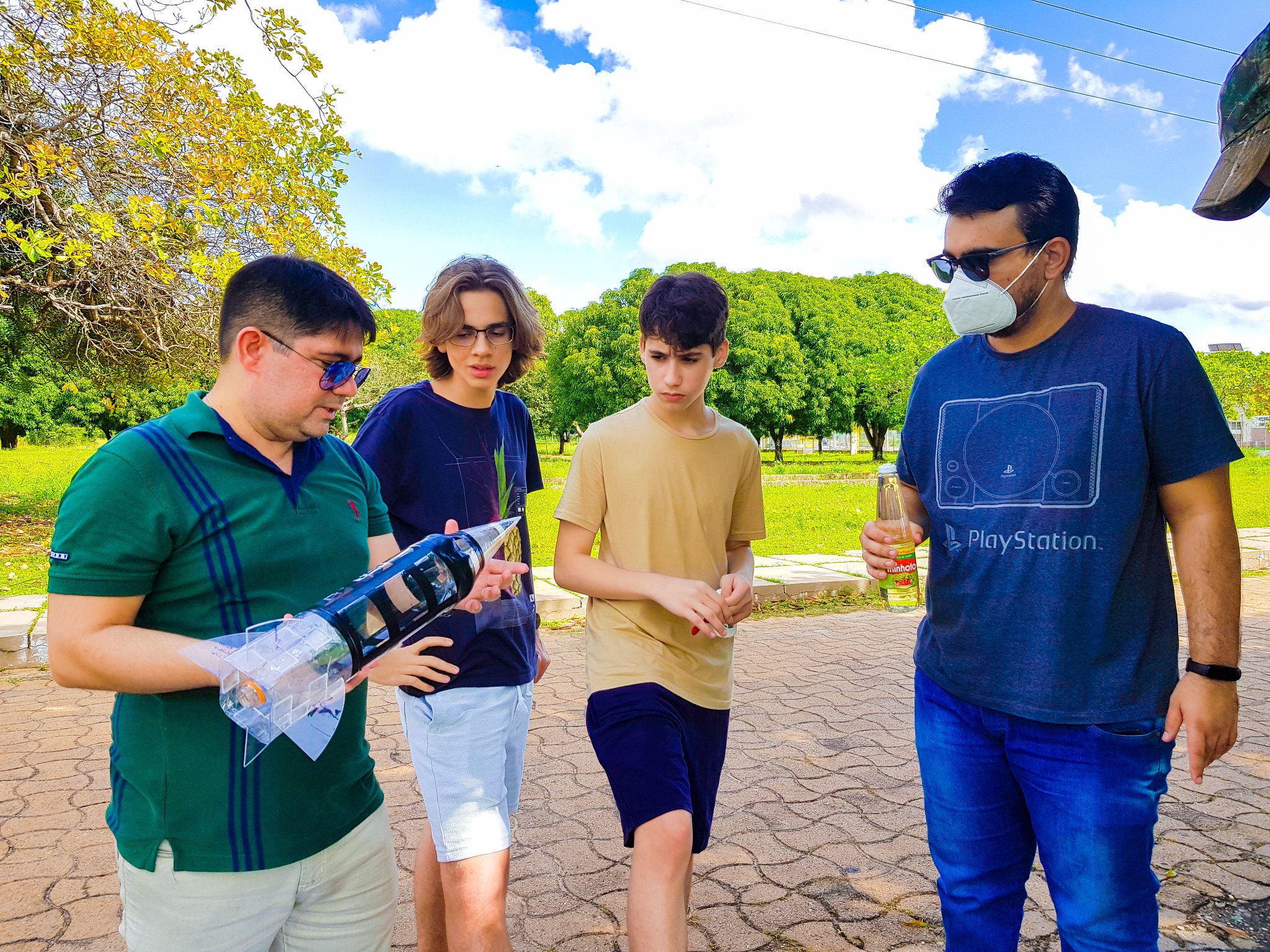 Nossos brilhantes amanhãs, acompanhados pelos professores orientadores Francisco Iago Lira, Jonatas Oliveira, Rawlinson Ibiapina e pelo monitor João Marcos, realizaram com sucesso os lançamentos de seus foguetes, que foram produzidos a partir de garrafas PET.