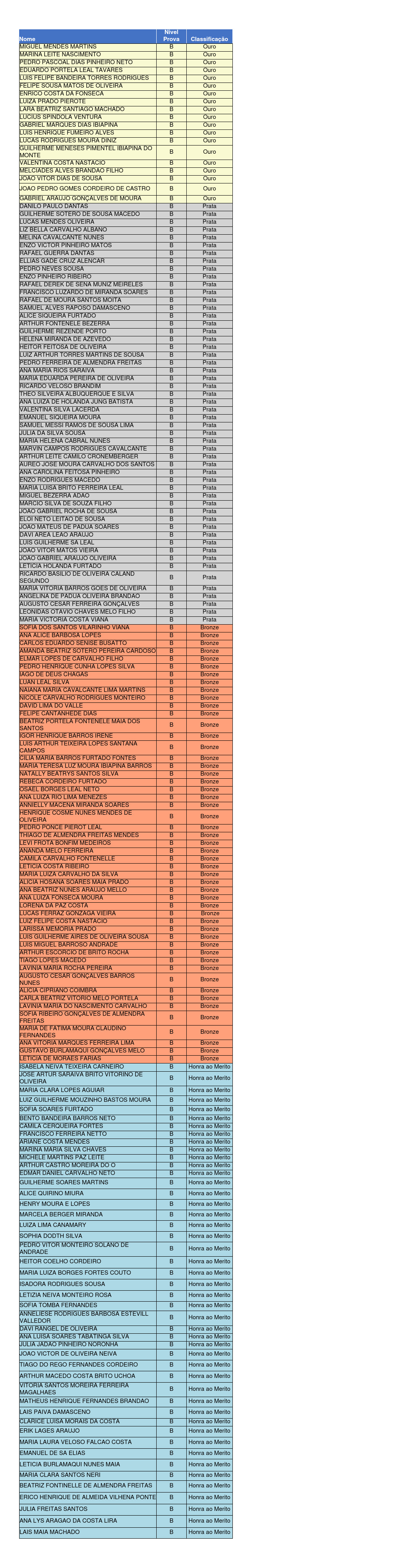 Nível B (Benjamin) – Alunos do 7º e 8º Anos do Ensino Fundamental.