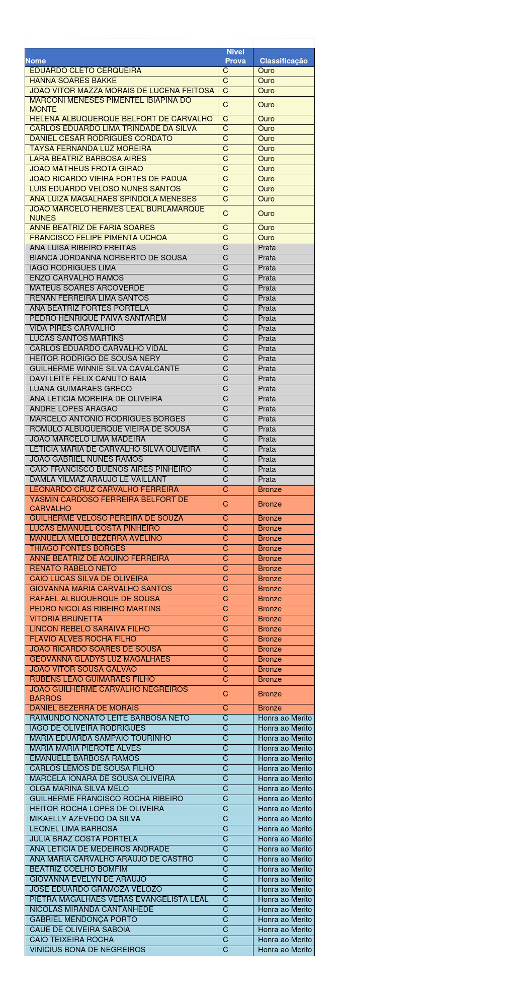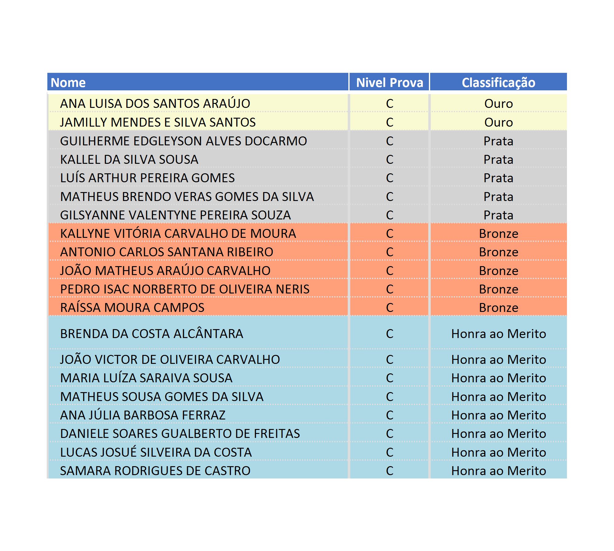 Nível C (Cadet) – Alunos do 9º Ano do Ensino Fundamental.