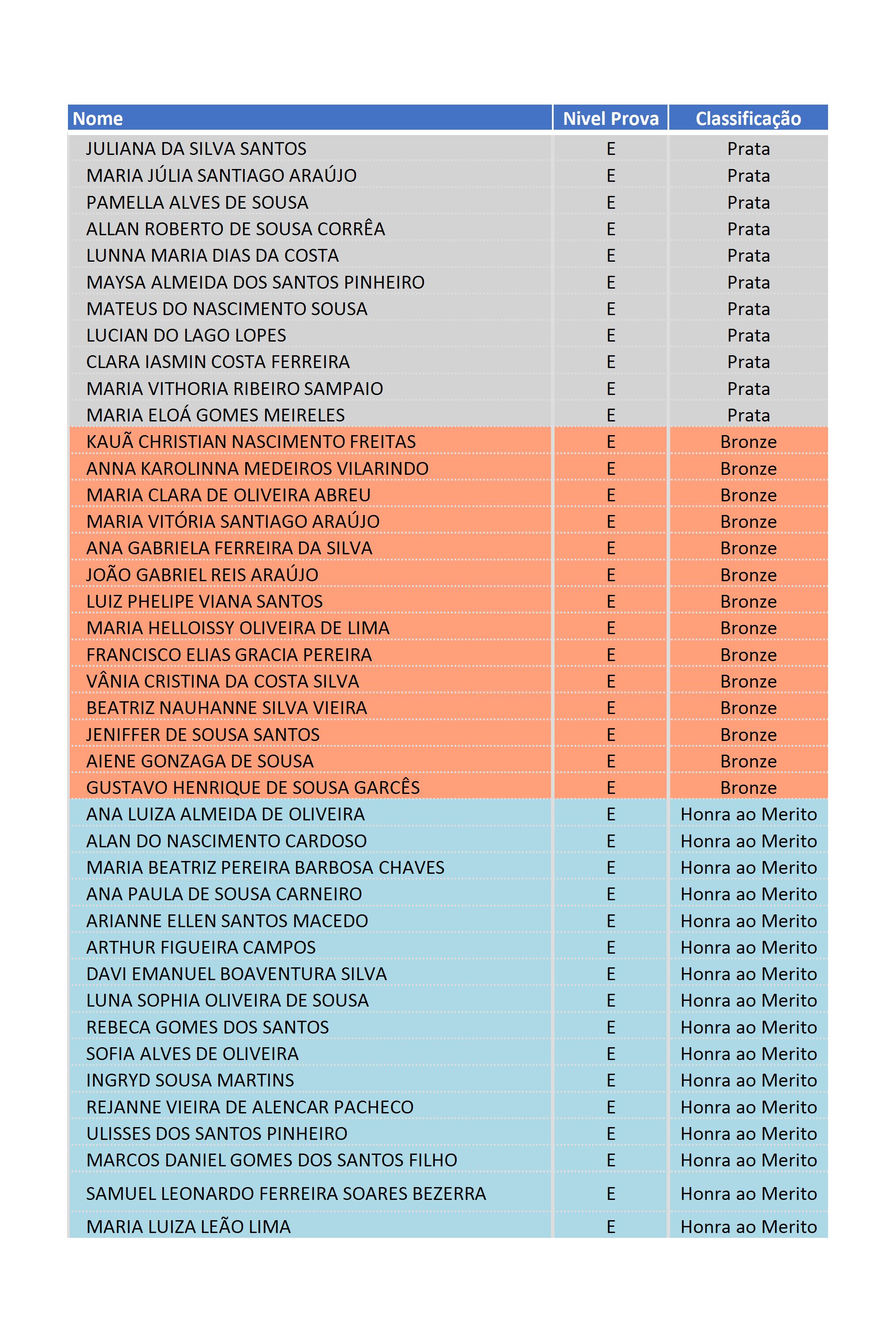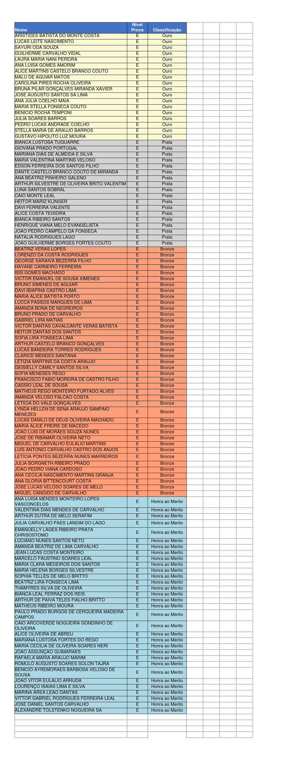 Nível E (Ecolier) – Alunos do 5º e 6º Anos do Ensino Fundamental.