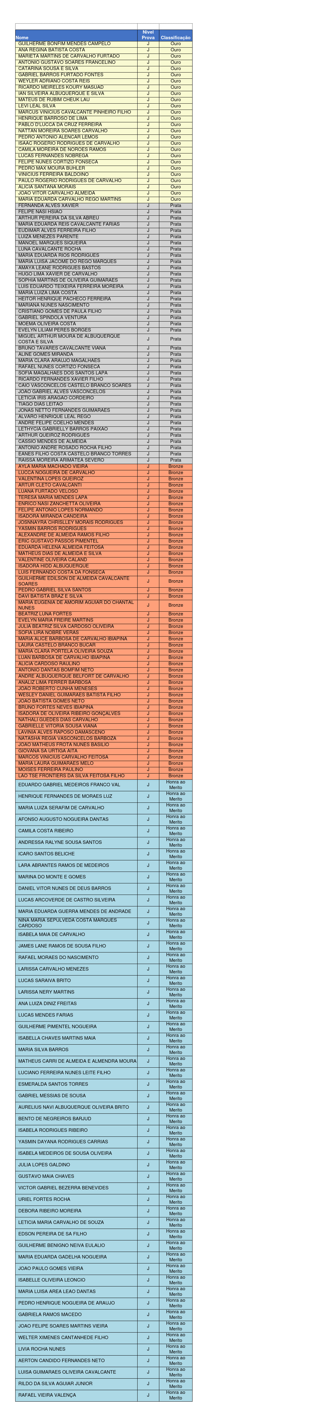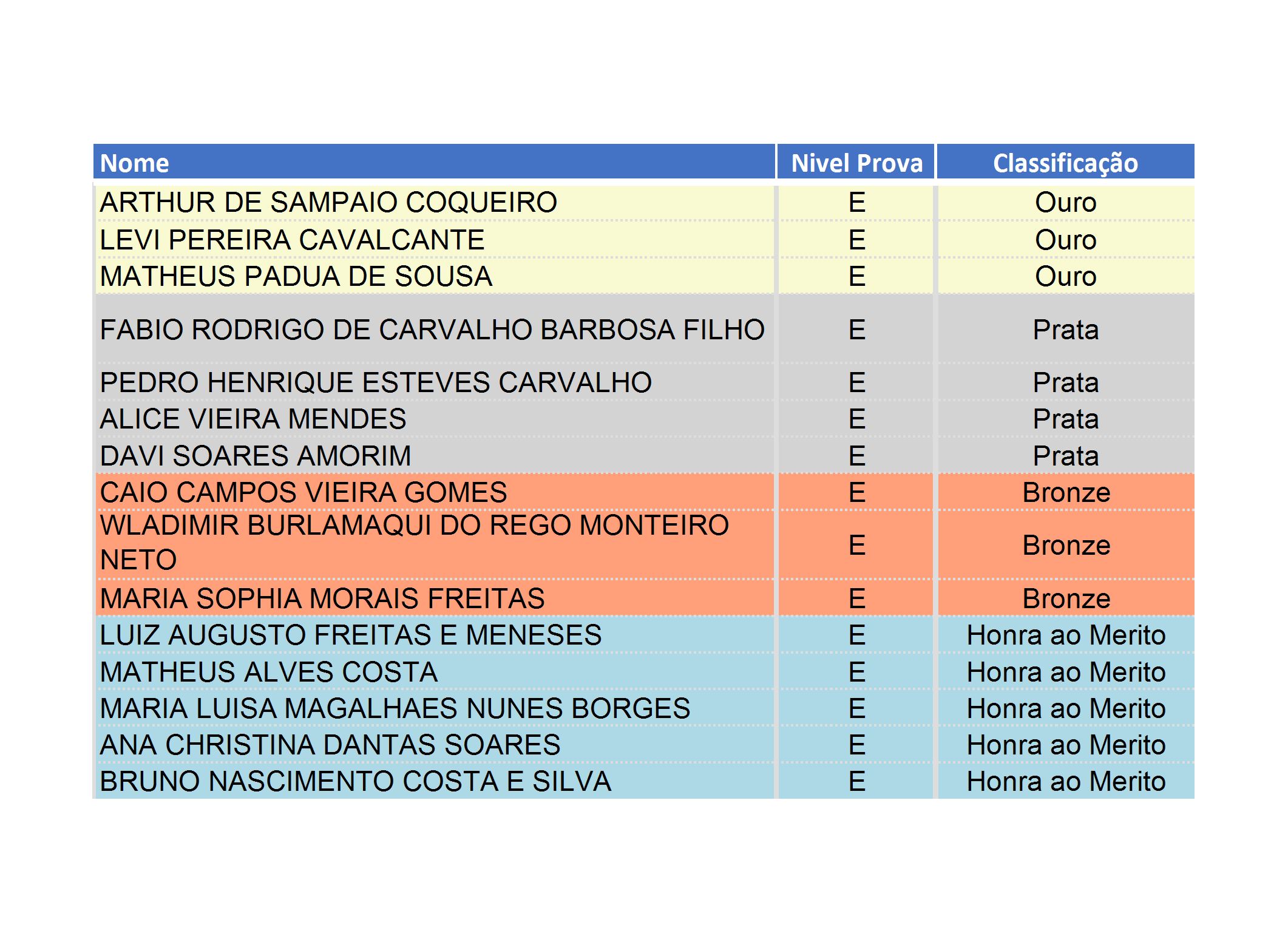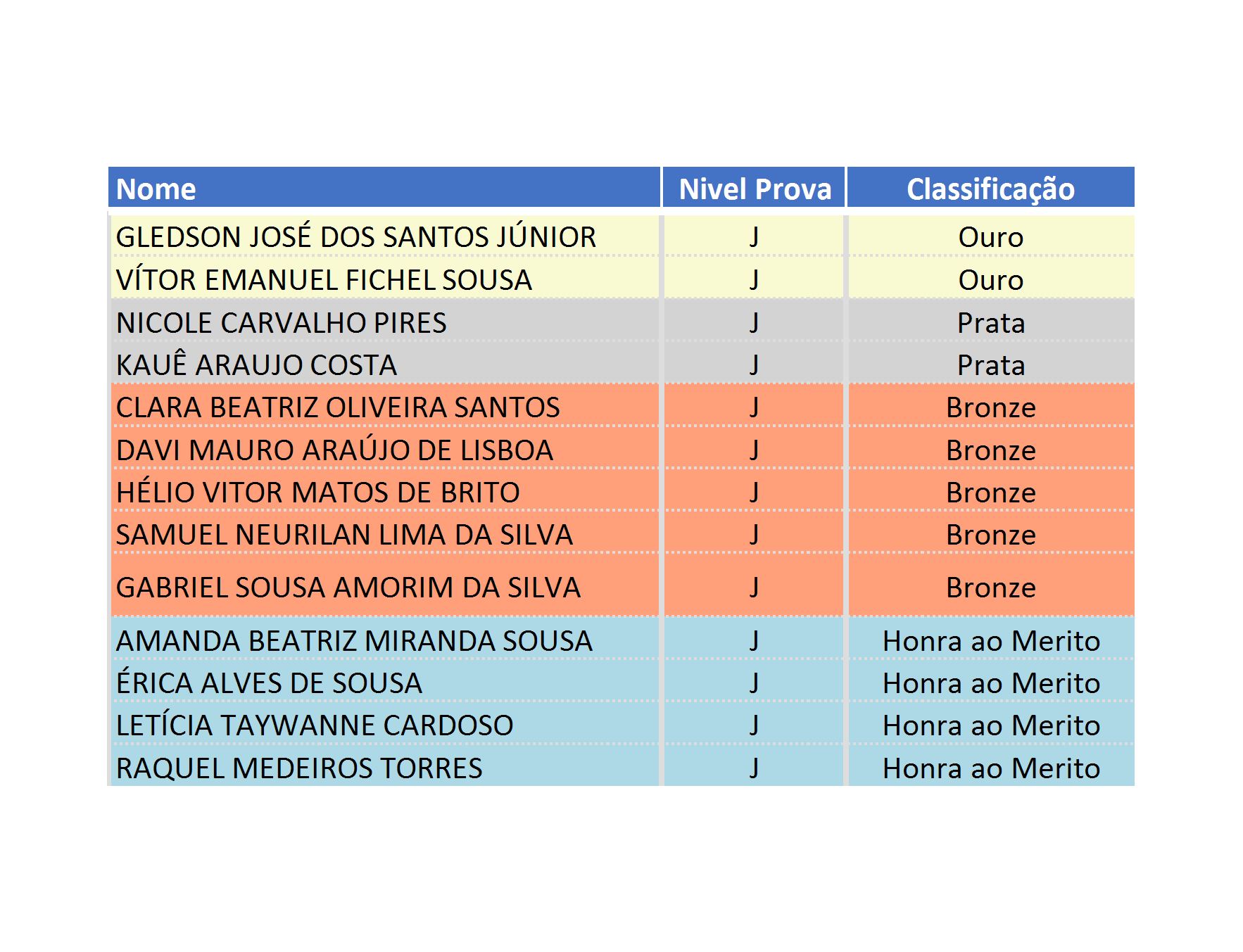 Nível J (Junior) – Alunos da 1ª e 2ª Séries do Ensino Médio.