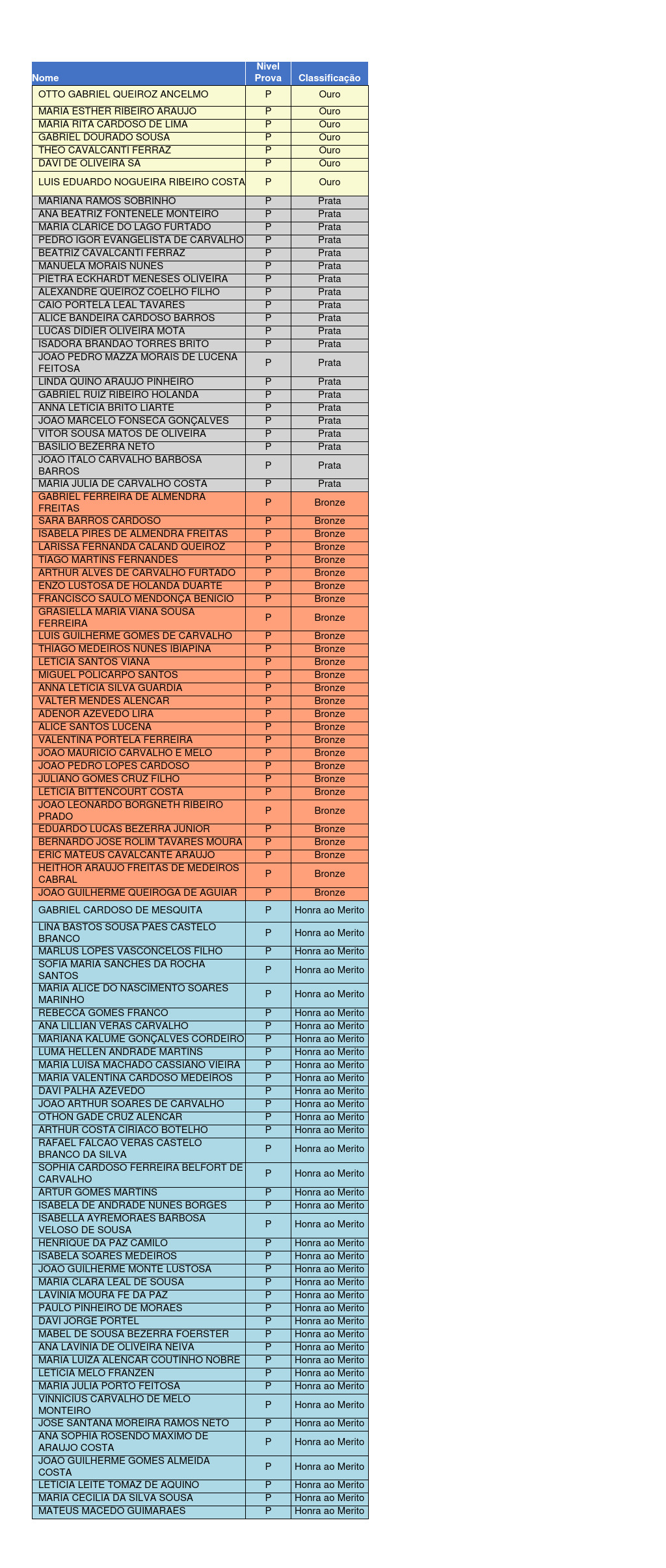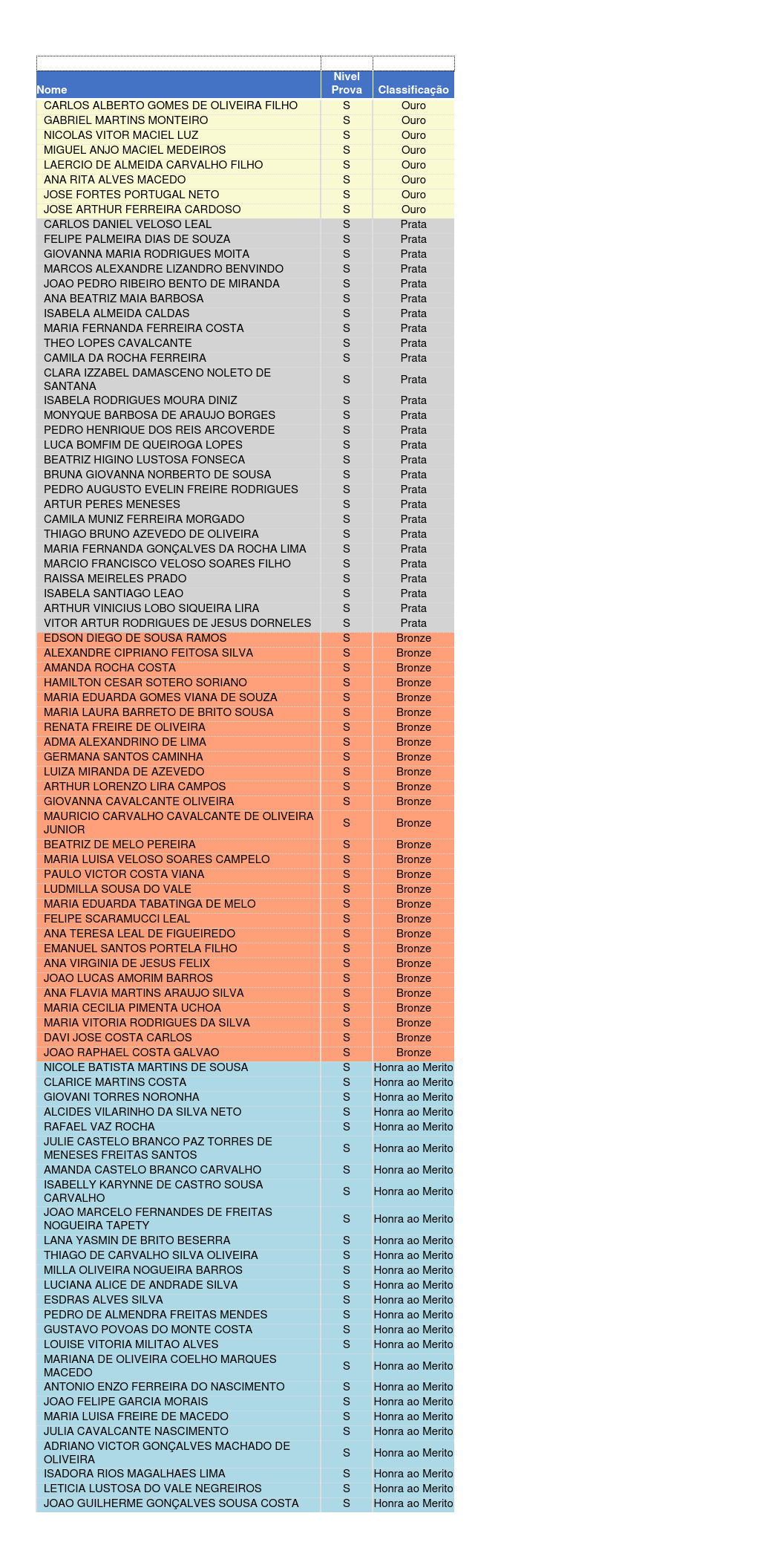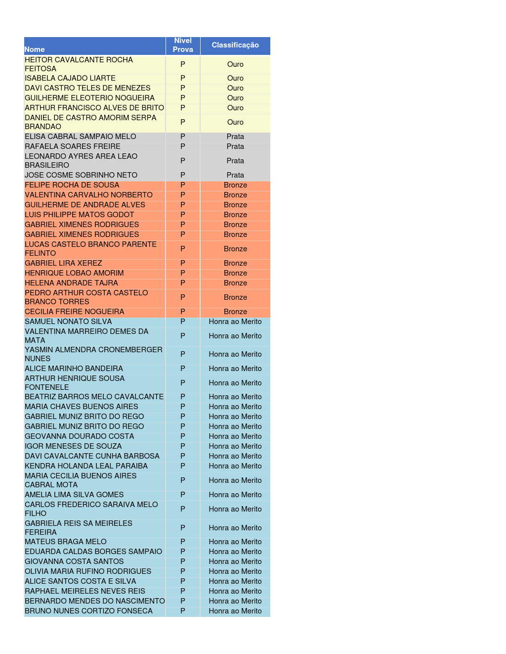 Nível J (Junior) – Alunos da 1ª e 2ª Séries do Ensino Médio.