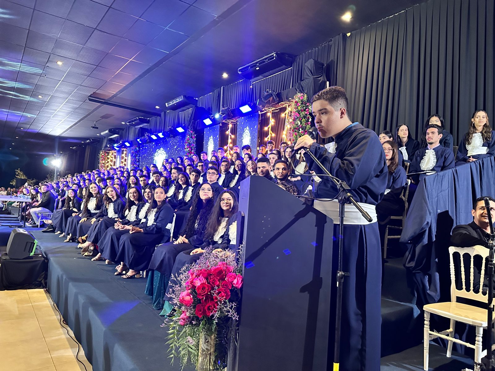 Discursos inspiradores dos oradores das turmas Estrelário (IDB) e Natus Vincere (Madre Maria Villac), representados por Sofia Magalhães, Maria Eduarda Gadelha e Kauê Araújo, emocionaram todos os presentes, ressaltando os laços construídos e os desafios vencidos ao longo dessa jornada. Em seguida, alunos como Luís Eduardo e João Paulo realizaram uma homenagem aos colegas, destacando o espírito de união.