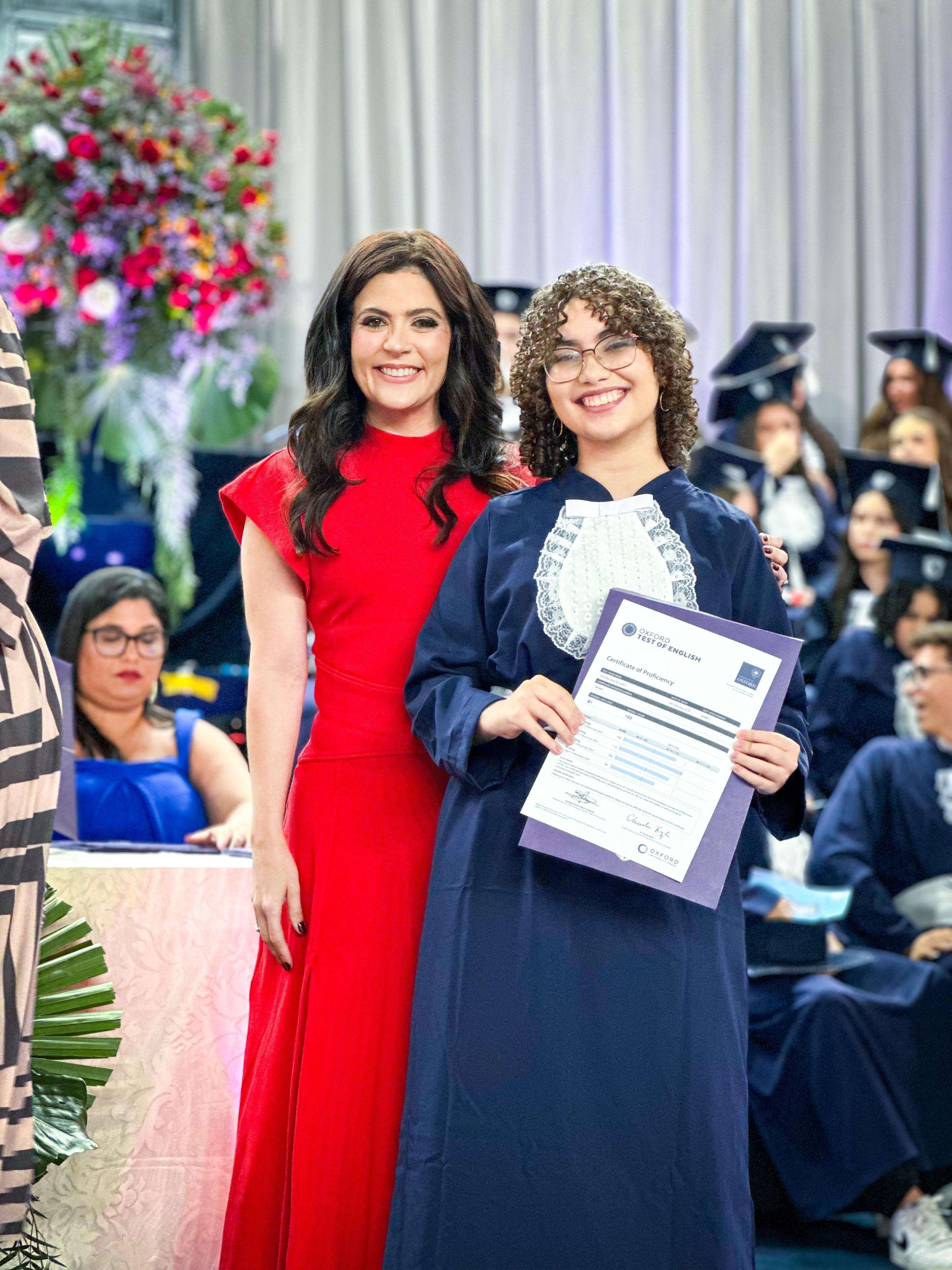 Um dos pontos altos da noite foi o reconhecimento do programa bilíngue da escola, liderado pela coordenadora Denise Amável. Com orgulho, foi celebrada a certificação dos alunos no Oxford Test of English, um marco de excelência acadêmica. A aluna Luíza Canamary discursou em inglês, emocionando os presentes ao relatar a importância dessa conquista para sua vida e sua família.