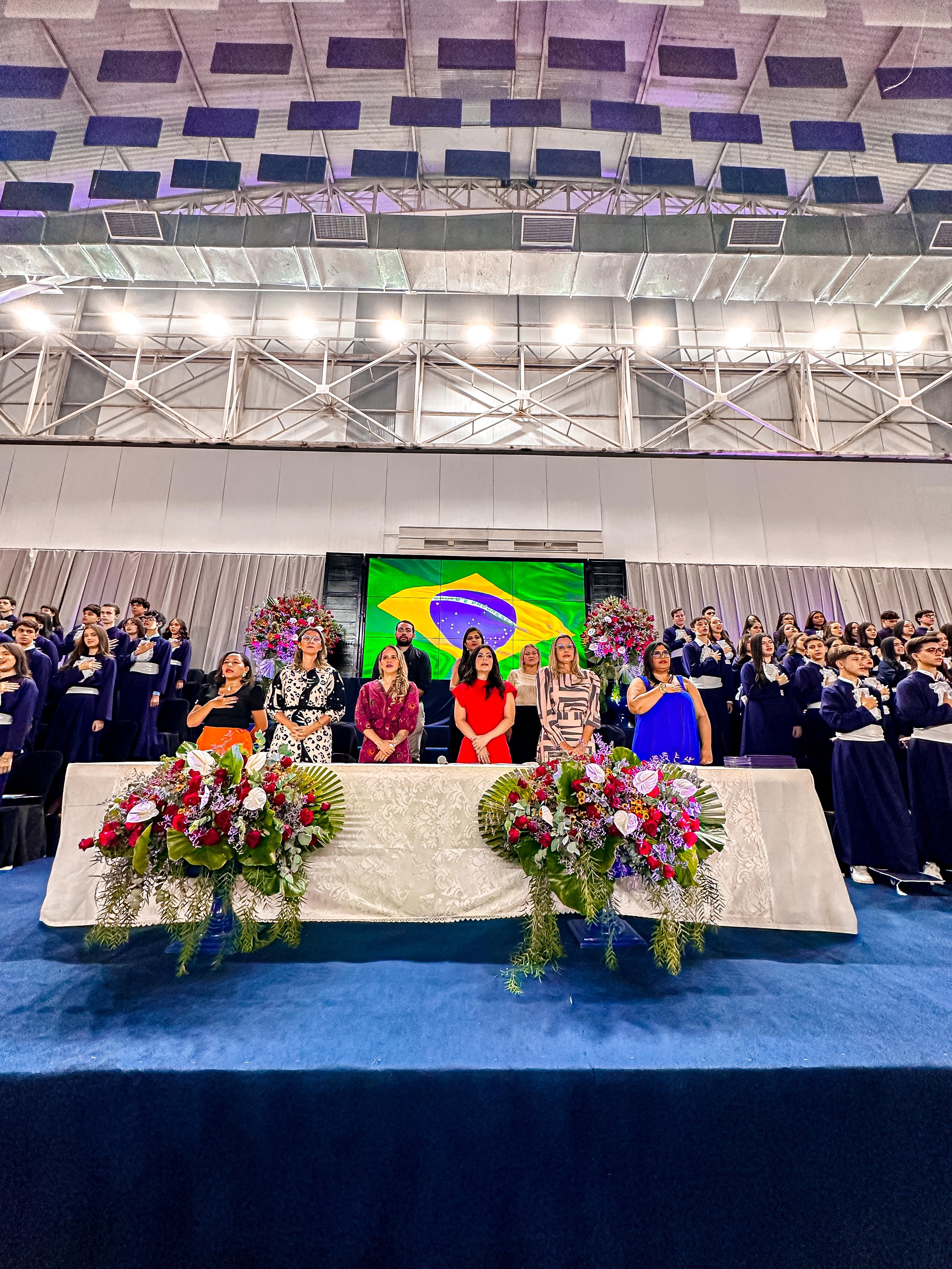 A diretora Marcela Rangel deu início aos discursos com palavras de encorajamento e gratidão, destacando a importância dessa etapa e os sonhos que guiarão os jovens formandos. Em seguida, as alunas oradoras compartilharam emocionantes relatos sobre os momentos vividos e o impacto de suas experiências escolares.